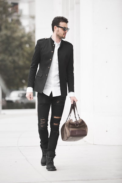 基本的にアウターの組み合わせは全て黒で統一し、無地のTシャツ、細すぎないパンツ、黒いブーツの3点を揃えます。